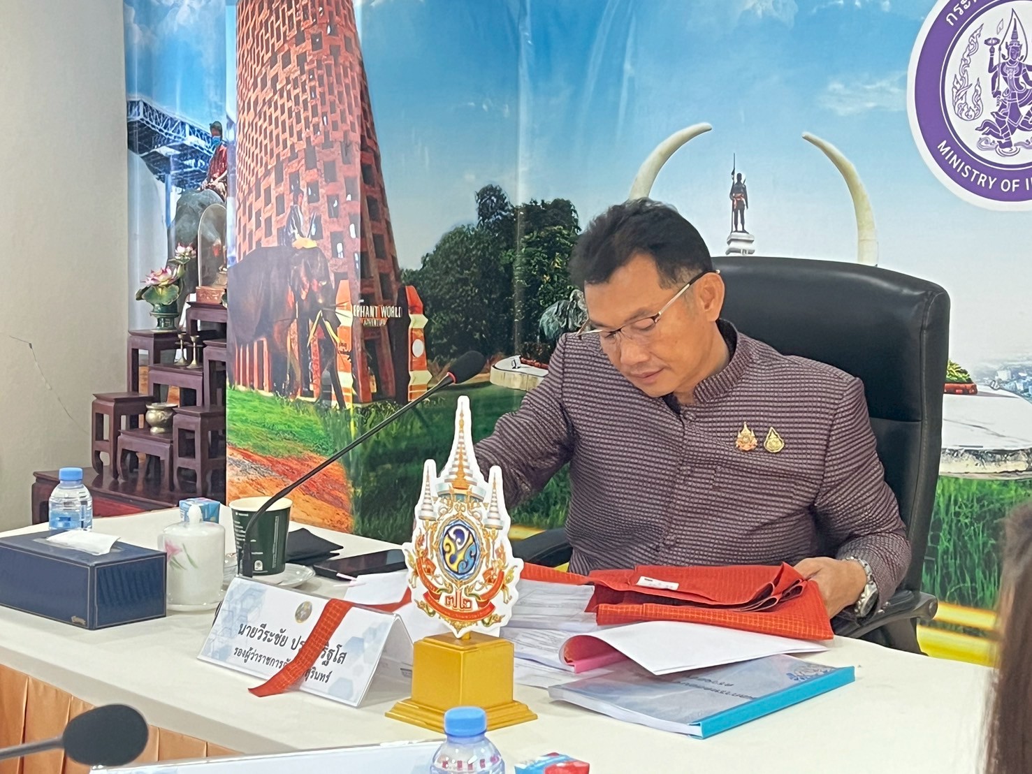 สำนักงานอุตสาหกรรมจังหวัดสุรินทร์ ดำเนินการจัดประชุมคณะกรรมการรับรองมาตรฐานผลิตภัณฑ์ชุมชน ครั้งที่ 4/2568 เพื่อพิจารณาให้ความเห็นชอบและรับรองผลการตรวจสอบผลิตภัณฑ์ชุมชน จำนวน 9 มาตรฐาน 23 คำขอ 23 ผลิตภัณฑ์