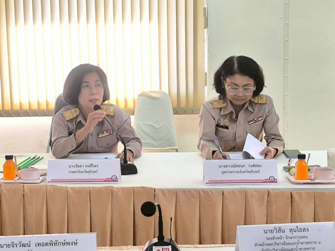 ในการนี้มี นางสาวณัสชนก วงศ์สละ อุตสาหกรรมจังหวัดสุรินทร์ และ นางรัตดา คงสีไพร เกษตรจังหวัดสุรินทร์ เข้าร่วมประชุมเพื่อให้ข้อมูลที่เกี่ยวข้อง